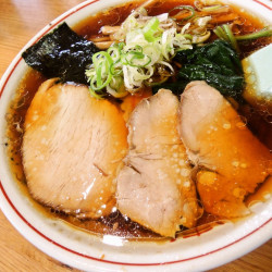 麺はサッポロ製麺の意外にも中太麺。でも、これがなかなかいい食感。スープは清湯醤油で生姜が少し効いています。チャーシューがなかなか。そのチャーシューを細かくしてチャーハンに使っていて、味濃いめで意外とクセになるかも。他の麺メニューに半チャーハンを付ける場合は+350円。やっぱりラーメンとのセットが随分とお得。