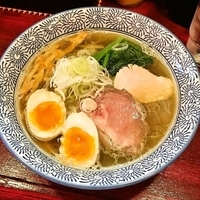 カウンターにある蘊蓄によると麺は創業70年になる森製麺。玉子は鹿児島県産の「うま赤卵」。金色貝そばは薄口醤油がベース。こだわりの繊細系だった。上品でおいしいのに店名が損しているな〜と書きたいところではあるが、そのギャップ萌えなのか、大行列。店名効果なのか、純粋に味なのか、2016年4月23日オープンで2ヶ月半だがすごい人気。食べ終えたのが並んでから90分後。イライラし過ぎて味が3割ダウンだったのに「これはうまい!」と思ったほどよくできている。行列が短くなるか、回転が速くなってからまた食べに来たい。(鴨が未食なので)