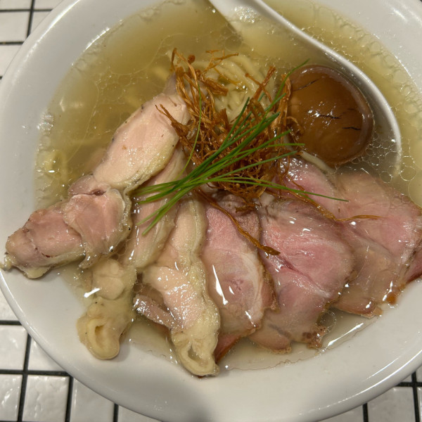 有名店「とら食堂」(白河)で修行した、手打ちの麺。適度に脂がのった鶏の澄んだスープ。炭火焼きの焼豚が美味。鶏ガラ、ゲンコツ、背ガラに、ネギの青い部分、タマネギ、昆布を加えて6-7時間煮出したスープと炭火で焼いてから醤油で煮た手づくりのチャーシューが、深い味わいを生み出している。