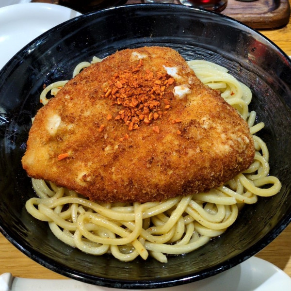 東京都新宿区新宿3-7-8 第2シグマビル1Fマップで見る濃厚昆布水つけ麺を頂きました。つけ汁は香味油多目の仕様で鶏と醤油のバランスも絶妙。麺は多加水中太スト麺でタピオカ粉が練ってあるらしくプリプリ感が凄い。何より昆布水でドゥルンドゥルン。2種のレアチャーもしっとりし