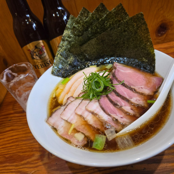 茨城の自然卵を使った自家製麺で一日寝かせて熟成させる。自然素材に天然本醸造醤油などの旨みを活かした無化調スープ。