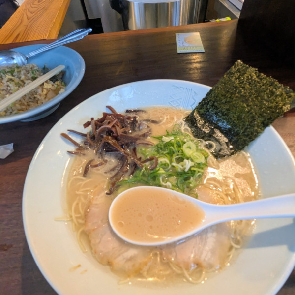 店名は店主の名から取った。トンコツ・トリガラで取ったスープはコクがあるのにさっぱりした白湯スープ。そこに時間をかけて作った特製醤油ダレを加える。内装や書き文字メニューはげんこつ屋風の綺麗なお店。