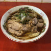 4/27,夜に訪問。連れが豚魚が食べたいと。近所で豚魚かぁ…あぁ小作にあったけど…と訪問。20時頃に訪問。先客結構いますね。券売機にて食券購入。とても強気な値段設定…なんだか無愛想なスタッフ。にしても店内暑い!この日は夏日を記録した日なのに空調設定どないや…これは…と不安がよぎりましたが予想は的中。男性スタッフなんの言葉も無しに食券を取りに来て、なんにも言葉を発さずに厨房へ…あぁこれはヤバイ。1人で回してて大変なのは分かるけど。。そして待つこと10分でこちら。つけ汁はうーん。はっきり、まとまりがないです。節?酸味?辛味?何を主張したいのか…印象に残りませんでした。麺は最近のつけ麺からすると細いです。ですがタピオカが練りこんであるとのことで独特の食感が楽しめます。香りも適度にあってこれは美味しかったです。久々に…となりました。スタッフの対応、ホスピタリティの悪さでここまで店自体の印象が悪くなるのかと。ただ、美味しいと評価できる面もあるので、、本店にも行ってみないとなぁ。ごちそうさまでした。