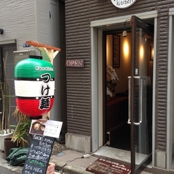 店前でメニューを見ていると「いらっしゃいませ。」私「つけ麺、まだありますか?」「あります。どうぞ。お好きな席へ。トッピング1品サービスです。」私「味玉でお願いします。」