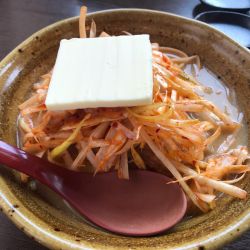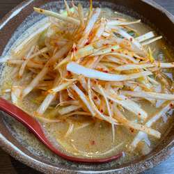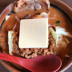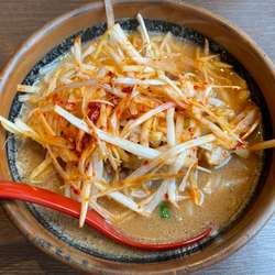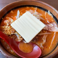 見た目は和風。茶碗のような丼に茶褐色の味噌スープ。その上にボリューム感たっぷりの太め... 続きを見る