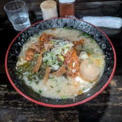 具材は刻みチャーシュー、煮卵、香味辛みネギ、 海苔、しなちく。刻みチャーシューは量もあり、 麺と絡めて食べると一体感が増す。煮卵は半熟で、途中で崩すと全体がまろやかに変... 続きを見る