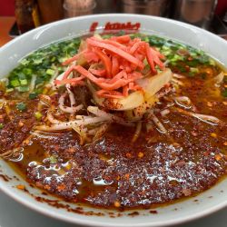 これは、旨いですね。スープは、レギュラーの特製味噌と一緒かな?でも、生姜のすりおろしがトッピングされていて良いアクセント。黒マー油は、あまり... 続きを見る