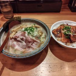 続いて濃厚中華そばと餃子3個が配膳。まずはスープから…鶏と魚介の濃厚な鶏白湯... 続きを見る
