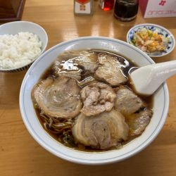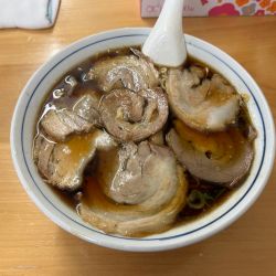 焼豚麺の大盛りにしてみました。濃いスープに見えますが、甘めの醤油ラーメン。麺はちぢれており、短め。チャーシュー旨し!ご馳走様でした。
