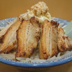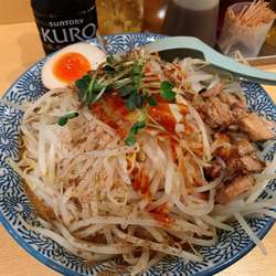 ラーメンは約7分で着丼。ビジュアルは多量のニンニクが野菜の上にのり、肉厚のチャーシューとアブラがかかったラーメンだ。スープを... 続きを見る