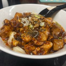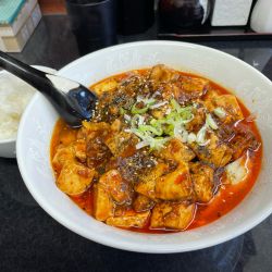 券売機で少し悩んでからやはり麻婆豆腐を選択。ライスもプッシュ。