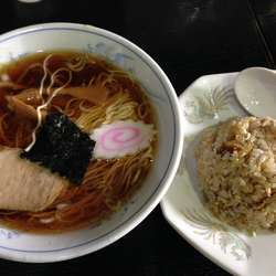 カウンター席に座り、半チャーハン+ラーメン750円を注文。