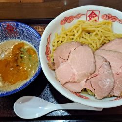 11時チョイ過ぎ、タイミングよく空席があり表題を注文。0.085tは醤油つけ麺の大盛。