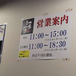 | 営業時間 | 11:00~15:00 [土・日・祝] 11:00~15:30 ※ラストオーダーは各30分前 |