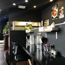 店は道路に面した一軒屋。店内は黒を基調とした内装でカウンター10席とテーブル18席。冷房が良く効いている。