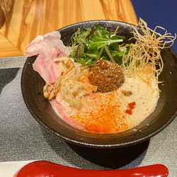 | メニュー | メニューの写真を見る 汁あり鯛担麺 辛くない 850円 |