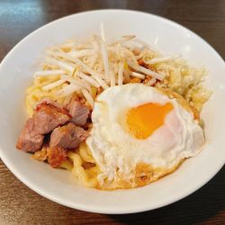 しばらくして到着。うどん並に太い麺が特徴的。まぜまぜして一口。美味い。麺はモチモチ、タレは辛味と旨味がちょうどいい。卵が全体をマイルドに包... 続きを見る