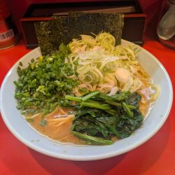 「Wネギラーメン」@横浜家系ラーメン 黄金家の写真白ネギと青ネギが山盛りのルックスを見て、ネギ好きとしては居ても立ってもいられなくなりこちらへ初訪しましたw