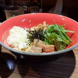 どんどんらしいコハク酸のような旨味がいつもより強めにでていて、やはりほかのチェーン系の油そばとは違いが際立っている。塩だれのように思われ、合わせた出汁の旨味がダイレクトに響いてくる。油感はほどほど。