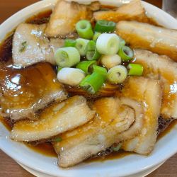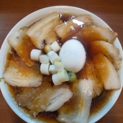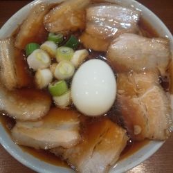 | メニュー | メニューの写真を見る 特盛チャーシュー中華そば(麺大盛・半熟玉子付き) 1200円 |