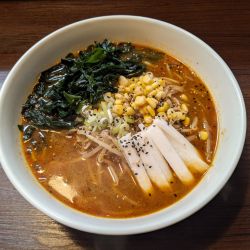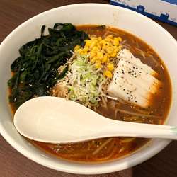 スープは、中華鍋で味噌だれや辛味、野菜をラードと共に炒めて仕上げられます。大きな圧力釜があり、時間のかかる動物系が使われていることをうかがわせます。辛さが0.5~5番... 続きを見る