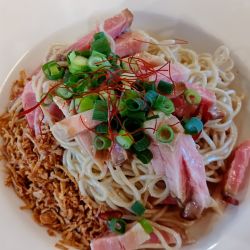 麺は、中くらいの太さのものです。スープによくなじんでいます。