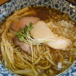 | 備考 | 丸鶏×鶏ガラ×鶏ひき肉×ゴボウ他野菜の清湯スープ カエシ:雫石産醤油、昆布、カタクチイワシ、椎茸の軸、宗田節など 麺:自家製多加水中太ストレート。ゆきちから、ねばりごし使用 豚うで肉、鶏もも肉の低温調理チャーシュー |
