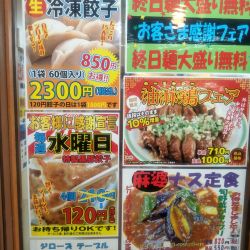 | 備考 | 各種電子マネー、QRコード決済利用可能 お客様感謝フェア ① 終日麺大盛り無料 ② 毎週水曜日 餃子4個→120円 |