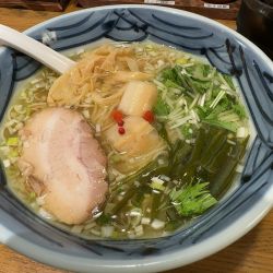 | 備考 | 塩ラーメンが人気のお店。麺は浅草開花楼。 鶏油でスープに甘味とコクを加えている。(鶏のテール油を香味野菜と一緒に弱火でじっくり煮込んだ油) 塩らーめんに「ねり梅・ゆず胡椒」、熟成塩らーめんに「パルメザンチーズ」、つけめんに「ワサビオイル・ジンジャーオイル」もあり。 スープのバランスを崩さぬよう、少しづつご利用下さい。 2024.5月閉業 |