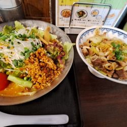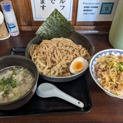 ランチメニューの中からこれまで未食だった味玉中華そば770円、ネギチャーシュー丼319円を口頭注文。入店時店内客7名。