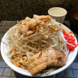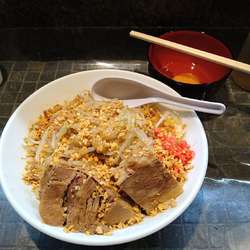 19/4/17訪問。過去分ですが、閉店しているので、足跡を残させていただきます。まぜろー 小(780円)を、コールは普通で。麺は、ごわつきのある屈強な太麺。強めの麺で、具たちに負けていない。具は、生卵・野菜・バラロール1枚・揚げ玉。コールは、普通なので刻みニンニクが入る。タレはなかなかたっぷりと入り、やや濃いめ。黒胡椒も入るが、これは好みが分かれそう。卓上に設置があるのだからデ... 続きを見る
