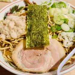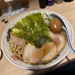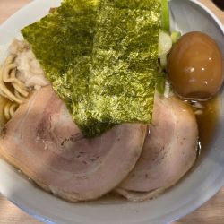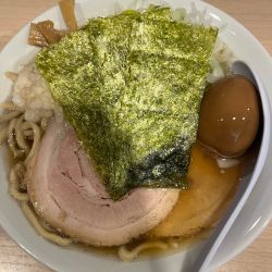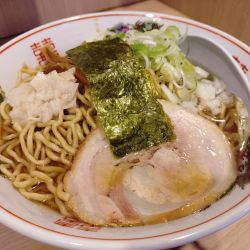 さっぱりした煮干しスープにこってりした背脂と柔らかいチャーシューが載っていてそこにちぢれた太麺がドガッと入っている。個人的にはかなり好きな食感と味。また来よう。。