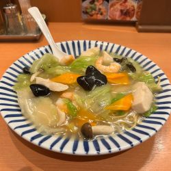 モチモチ食感で食べ応えがあり、あっさりとしたスープに