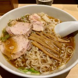 | 備考 | 永福町大勝軒にて6年以上修行した後、 大勝軒の暖簾をいただく。 【注】実は永福町大勝軒では暖簾分けはしておらず、 ”いただく”というかたちだそう。 製麺は草村商店。 またスープに蓋をして熱々を保ち、 独特のコクを付与する永福町大勝軒お馴染みの オランダ産高級カメリアラードは店主証言によると 「使っていません」とのこと。 |