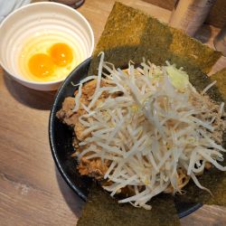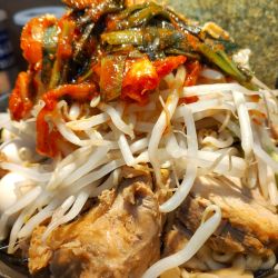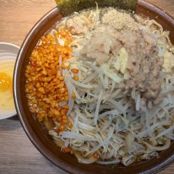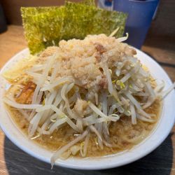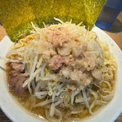 | 備考 | 油少なめ、味薄め、麺硬め、柔らかめは、食券を出した時に申請。 コールは提供直前に聞かれます。 野菜 ニンニク アブラ カラメ 魚粉 カラアゲ(辛いあげ玉)がコール可能(野菜増し増しは有料) 麺量(茹で前) ミニ 150g 半分 180g 少なめ 250g 小 350g |