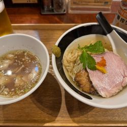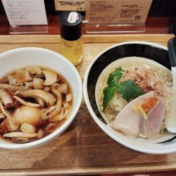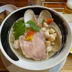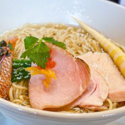 | 備考 | 「煮干醤油そば」、「浅利とムール貝の汐そば」、 「節そば」の三品はいずれのスープも 動物系素材不使用のアニマルオフで仕込んでおり、 香味油にも鶏油やラードは含まず徹底する。 またスープのボディ強化のため、 それぞれのラーメンには惜しげなく大量の食材を使用。 清潔感あるお洒落な店の雰囲気に インスタ映えするポップで繊細な盛り付けや アニマルオフのヘルシーなスープということで、 男性客のみならず女性客からの支持も高い。 元欅坂46人気メンバーだった長濱ねるちゃんが、 「浅利とムール貝の汐そば」が大好きで通っているそう。 (雑誌「POPEYE」885号の「私のBEST Dishes3」より) |