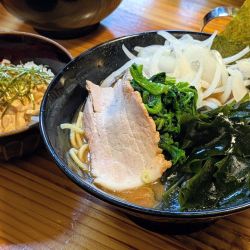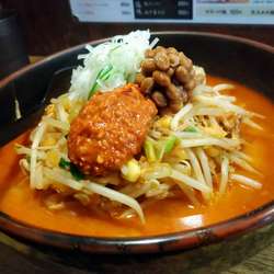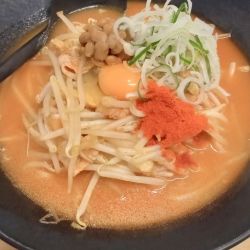 チャレンジメニューかという程のボリューム。かなり気合いがいります。香りは納豆+醬系の味噌ラーメン。キムチもきいてかなり複雑な味。ややクセありますが、私は好... 続きを見る