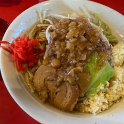 高騰のせいかチャーシューがだいぶ小ぶりになってしまったのと、野菜大は行くたびに品切れなので、最初から書かないで欲しい。
