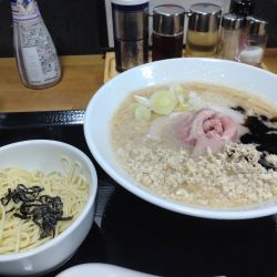 アイモらーめんにニンニク、背脂、刻み玉ねぎ、鶏の挽き肉、マー油を追加したメニュー。