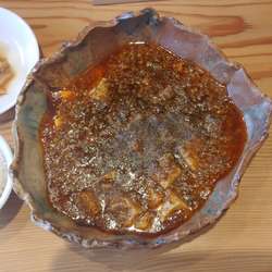 大量の花椒が放つ爽快感がたまらない、粘度高めの四川麻婆豆腐。