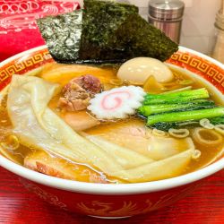 | 備考 | 中華そばは名古屋コーチンやはかた地どりなどを昆布水で 約12時間煮込んだスープに 竈で炭火焼きしたチャーシューのタレを加える。 冷蔵庫で1日寝かし足踏みで鍛えた 自家製手打ち縮れ麺(180g)は岩手県産小麦もち姫を配合。 (以上は「散歩の達人」2022年5月号より) 土日祝・繁忙日のピークタイムはTableCheckのファストパス予約あり。 |