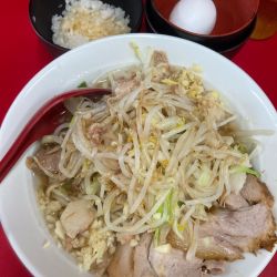 | 備考 | [無料トッピング] ヤサイ、ニンニク、アブラ、カラメ、ショウガ 野菜抜き可能です、アブラ少な目は全店共通して言えますが食券確認時にコールをしましょう [卓上調味料] 醤油ダレ、白胡椒、唐辛子 店舗入口は左側ドア。箸はプラスチック箸。レンゲとティッシュ共にあり。 ティッシュは出口の前にあります。 店頭右に黒烏龍茶メインの自動販売機あり。 行列は店内5、店外5まで、それ以上になった場合は向かいの歩道に並ぶ。 周辺は団地、店の上はアパートの閑静な住宅地なので会話は静かに 店主さんはラーメン二郎 大宮店(閉店)、肉うどん さんすけ現店主のご兄弟。 無料トッピングのショウガはラーメン二郎 大宮店(閉店)から継承。ラーメン二郎では唯一の無料トッピング。 食券機はラーメン二郎 高田馬場店(閉店)から譲り受けたもの。 |