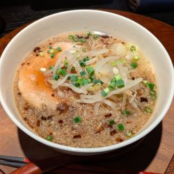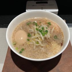 ちゃぶ屋出身。和食店のような内装や、店主の職人気質な佇まいに出身店の面影を感じる。スープには背脂と揚げネギが浮かぶが、とても丁寧な印象の醤油味。同門の「はな火屋」に似ている。これが三河島時代のちゃぶ屋の味なのか。少し古めかしさは感じるが、美味しい。