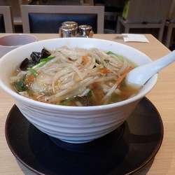 道路に面した広い、きれいなガラス貼り、食品サンプル。入店し、店員さんに空き席を案内され着席。