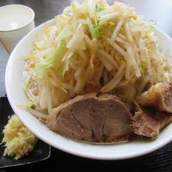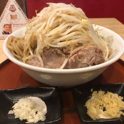 こちらは大食いメニューでラーメンの他にモツや巨大おにぎりがあり、MAX鈴木が来たよう。