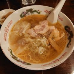 気になっていたお店、やっと機会があり来店。うーん、店名のトリデンラーメンをいただく。麺は固めでお願いする。味玉、ワンタン、チャーシュー、刻みネギ、メンマの旨そうなビジュアル。スープからいただく、鶏ガラと思われる旨味に野菜のような旨味があわさる、シンプルだが、これは旨い、そこに醤油の丁度よい風味がマッチ、適度な脂もコクをプラスしてくる。ワンタンは熱々、ツルシコッっとした食感に挽肉... 続きを見る