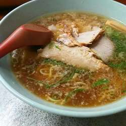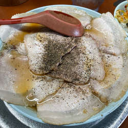 チャーシュー山のように乗った旭ラーメンにワリと呼ばれるライス半分❢