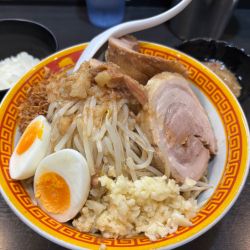 | 備考 | 【店員からニンニク入れますか?と聞かれたら返答】 全部普通(※実質コールなし)にすると、 野菜通常量+ニンニク抜き+アブラ少し ■野菜 増し>少し>(コールなし)>少なく>抜き ■ニンニク ニンニク>少し>ニンニク抜き(コールなし) ■アブラ(※別皿提供) アブラ増し>アブラ少し(コールなし) ■マヨネーズ(※汁なしのみ) |