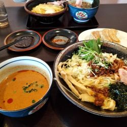 未食の冷しを奥さんは、つけ麺の生粋と餃子3個を注文。