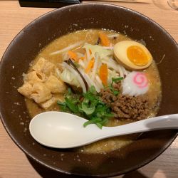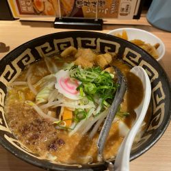 新作メニューです。濃厚と銘打っているだけあって、味噌感すごいです。ただ、豚骨ベースではあります。ひき肉もたっぷりで肉肉しく、食べ応えありました。